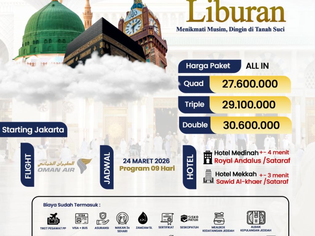 - Harga dan Program sewaktu-waktu dapat berubah sesuai regulasi dari pihak kerajaan Arab Saudi, Indonesia